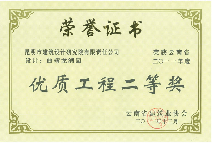 “曲靖龍潤(rùn)園”獲云南省2011年度優(yōu)質(zhì)工程二等獎(jiǎng)