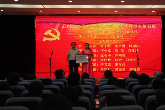 大會對在2018年度的支部黨建工作和個人工作崗位上取得優(yōu)異成績的先進(jìn)黨支部和優(yōu)秀共產(chǎn)黨員進(jìn)行表彰,并頒發(fā)了榮譽(yù)證書。公司黨委希望受表彰的黨支部和黨員同志珍惜榮譽(yù),保持先進(jìn)。在今后的學(xué)習(xí)、工作、生活中,繼續(xù)彰顯典范、做出表率,取得新的成績。同時,公司黨委也號召大家以他們?yōu)榘駱?,在各自的崗位上保持黨員的先進(jìn)性,顧全大局、愛崗敬業(yè)、無私奉獻(xiàn)、保持穩(wěn)定、促進(jìn)和諧、求真務(wù)實、開拓進(jìn)取、創(chuàng)造業(yè)績。