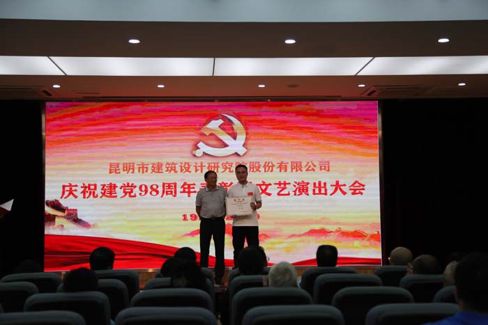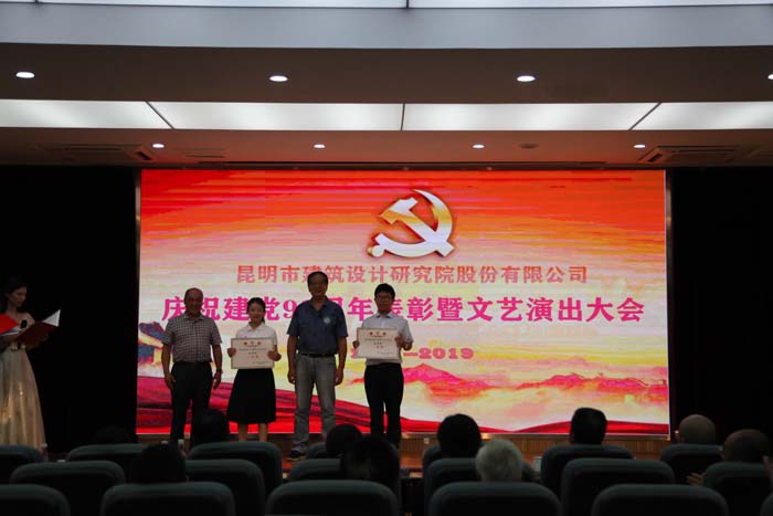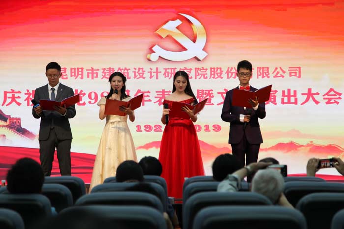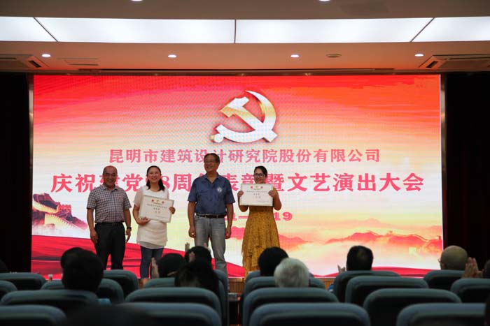 董事長講話之后,大會對2018年度先進(jìn)黨支部、優(yōu)秀共產(chǎn)黨員進(jìn)行了表彰并進(jìn)行頒獎。儀式后,各部門紛紛獻(xiàn)上精心準(zhǔn)備的文藝節(jié)目,大家引吭高歌,將發(fā)自內(nèi)心的頌歌獻(xiàn)給祖國,獻(xiàn)給人民,獻(xiàn)給黨。重慶大學(xué)云南校友會、大理市規(guī)劃設(shè)計研究院、著名朗誦藝術(shù)表演者丁進(jìn)老師也來到了我們身邊,為黨的生日獻(xiàn)上精彩節(jié)目。同時,云南省招投標(biāo)管理辦公室、云南省建設(shè)工程招投標(biāo)行業(yè)協(xié)會的領(lǐng)導(dǎo)嘉賓也參與了觀禮。下午六時,大會在雄壯的《國際歌》歌聲中圓滿落下帷幕。