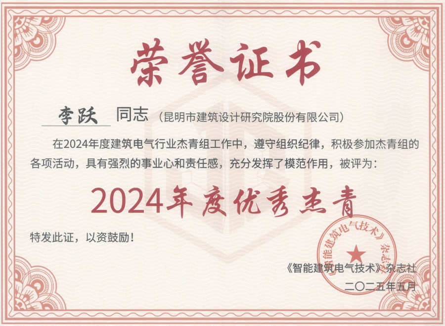 會(huì)上,公司電氣副總工程師李躍榮獲“杰出青年專家組2024年度優(yōu)秀成員”稱號(hào),主任工程師滕昭陽(yáng)榮獲“建筑電氣行業(yè)杰出青年專家”稱號(hào)。