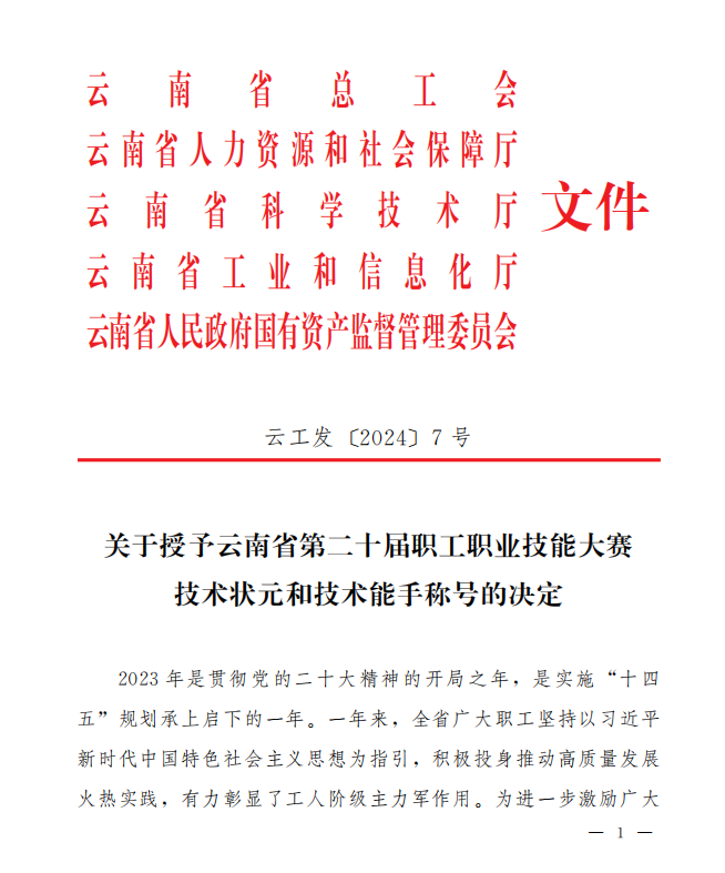 這是在去年省總工會(huì)等多部門聯(lián)合舉辦的以“匠心創(chuàng)造、技能興滇”為主題的云南省第二十屆職工職業(yè)技能大賽中評(píng)選出來的。其間,來自全省各個(gè)行業(yè)的職工在各自領(lǐng)域比拼技藝、展示風(fēng)采,充分體現(xiàn)了廣大勞動(dòng)者走技能成才、技能報(bào)國之路,加快建設(shè)知識(shí)型、技能型、創(chuàng)新型勞動(dòng)者大軍的精神風(fēng)貌。