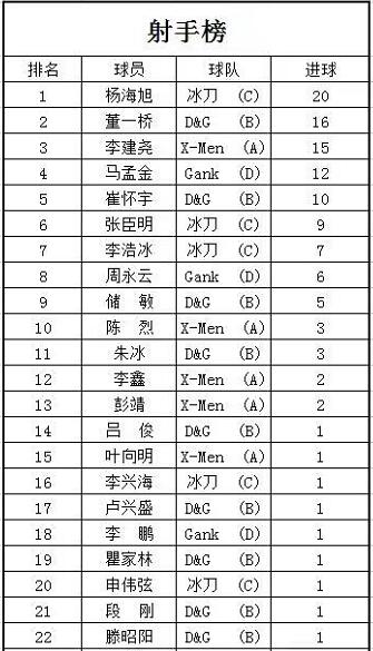 中場休息,兩隊隊員都針對兩方陣容做出針對性調(diào)整,下半場異再戰(zhàn),前15分鐘雙方攻守相對平衡,比賽很精彩,卻很難取得進球,但雙方都在不斷嘗試著進攻,經(jīng)過幾次嘗試冰刀隊率先打破下半場僵局5:4領(lǐng)先,隨后再下一成6:4領(lǐng)先,D&G隊再次做出人員調(diào)整,加強前場逼搶,取得立竿見影的效果,迫使對方禁區(qū)內(nèi)范規(guī),D&G隊獲得一個點球,由隊長段剛主罰命中,D&G隊扳回一球,接下來的比賽冰刀隊斷續(xù)加強進攻,最終以9:5的比分取得勝利。